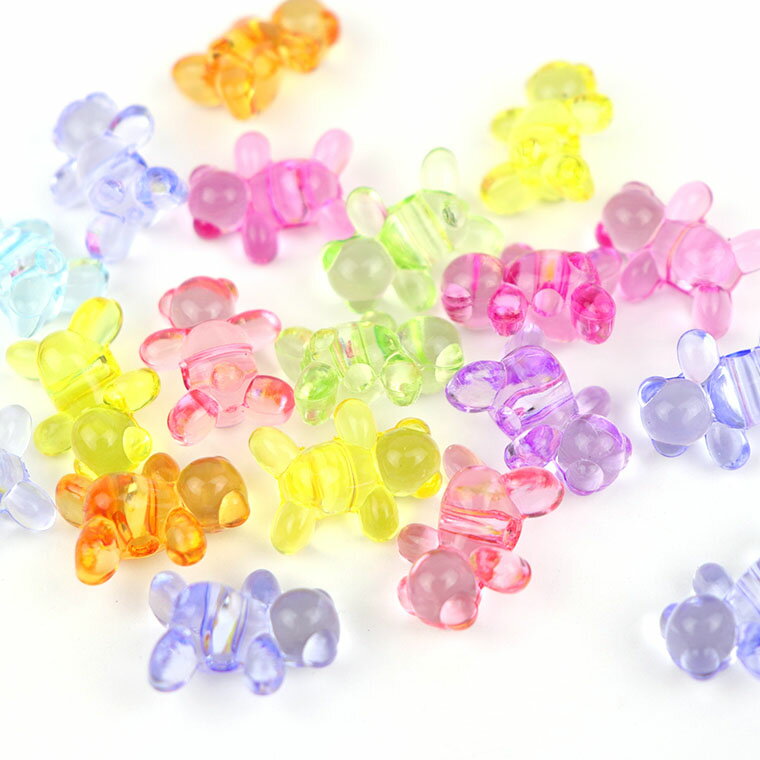 16×13mm 20個入 アクリルビーズ くま クリアカラー アソート 穴2.5mm / 熊 クマ ベア ぬいぐるみ 人形 ピンク 桃 パープル 紫 ブルー 青 イエローグリーン 黄緑 水色 黄色 クリア 透明 ミックス MIX プラスティック カラフル 可愛い ハンドメイド 資材【ゆうパケット対応】