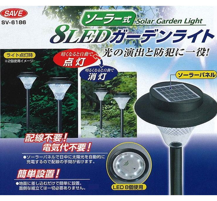8個のLEDで広い範囲を明るく照らす!光の演出と家の防犯に一役。