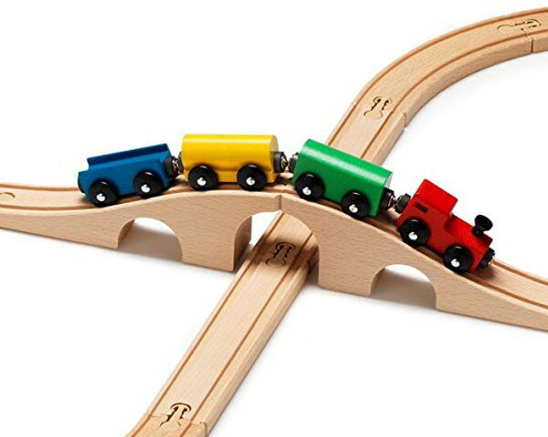 木のおもちゃ カーブレール×12 直線レール×2 鉄橋、4両汽車 各1 MICKI ミッキィ社製/スウェーデン ギフト対応