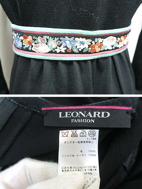 【中古】LEONARD レオナール ワンピース レディース ブラック お花刺繍 サイズ1
