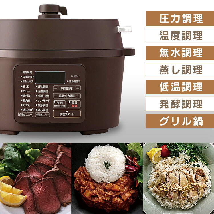 電気圧力鍋 アイリスオーヤマ 4l 圧力鍋 電気 家電 4.0L ホワイト カカオブラウン カシスレッド PC-MA4-W 送料無料 グリル鍋 鍋 おしゃれ シンプル ナベ なべ 電気鍋 卓上鍋 手軽 簡単調理 時短調理