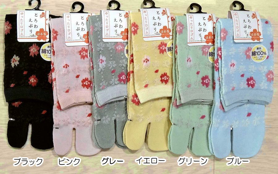 日本製足袋ソックス フロートに飴散らし桜 つま先が割れて足袋の形になったソックスです。