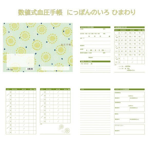 商品名血圧手帳 数値式 血圧手帳 数値式 たっぷり60ページ にっぽんのいろ 日本の伝統色 こうばい ひまわり 2冊セット説明お買い得 2冊セット【内容】血圧手帳 数値式 ※数値のみを記入するタイプ【ページ数】60ページ 29週(203日)記入することができます。