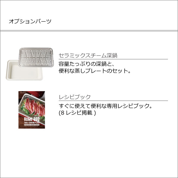別売りプレートを使えば、ホットプレートを使ったお料理を、より愉しむことができます。