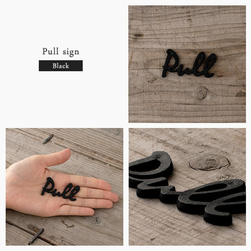 Hot Keyword---プルサイン プッシュサイン 黒 ブラック シンプル 店舗 オフィス 公共施設 北欧 おしゃれ 鉄 アイアン iron Pull SIGN サインレター アンティーク調 DIY ドアマーク 賃貸 RESTROOM 玄関 ドアプレート ピクト ピクトグラムPull/Push sign マットブラック塗装の真鍮製「PULL」「PUSH」サインは、木の扉と合わせれば古めかしく、固い素材と合わせればシャープでインダストリアルな雰囲気に。