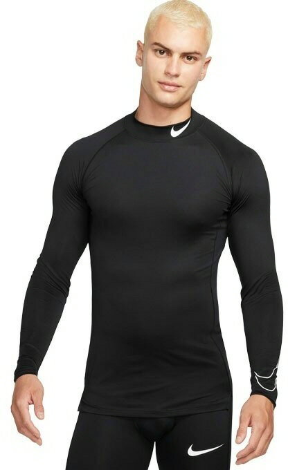 NIKE(ナイキ) Dri-FIT ナイキプロ メンズ タイトフィット ロングスリーブ モックネック トップ XL (010)ブラック×(ホワイト) NJP-DD1987-010