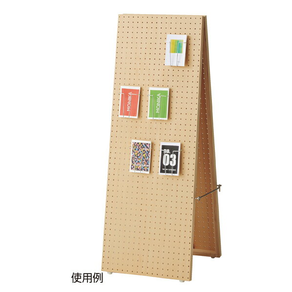 パネル:合板 シナ突き板貼り クリアラッカー塗装あおり止め:ステンレスW45×D45×H120cmパネル穴:φ5mm穴の芯々:25mm様々な陳列が可能な有孔パネル商品陳列だけでなく店頭のA型看板としてもご利用いただける両面什器です。