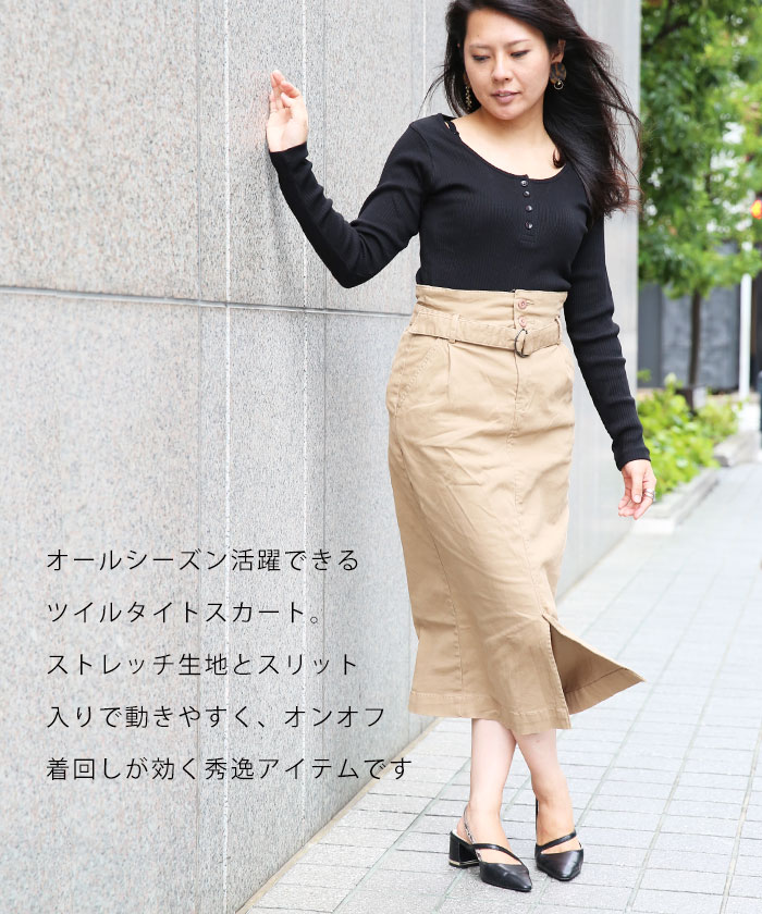 ストレッチ ハイウエスト タイトスカート ベルト付き スカート ボトムスInfomation商品説明女っぽストレッチツイルタイトスカート。
