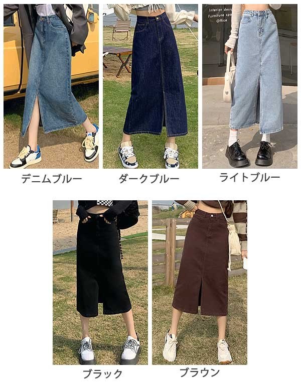 スカート スリット入り レデイース ボトムス デニムスカート タイトスカート 夏 ロングスカート 小さいサイズ 大きいサイズ ロング丈 ブラック ブルー カジュアル 可愛い セクシー おしゃれ dd295n1n1n1