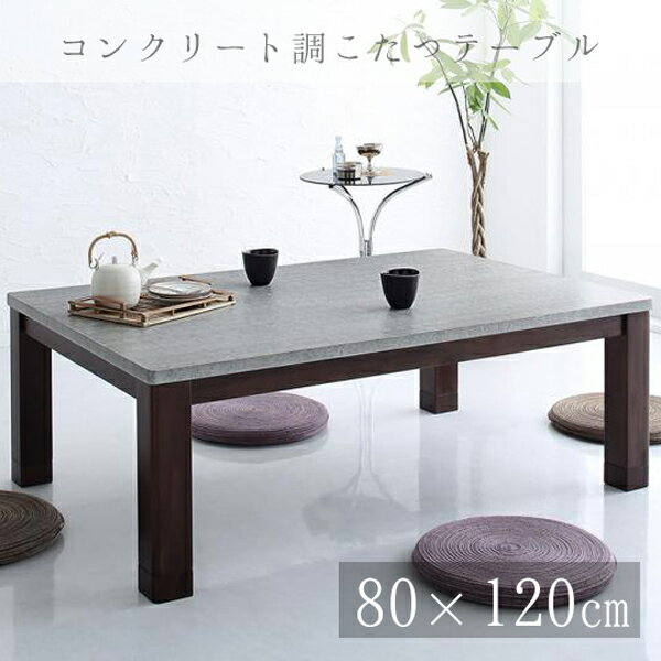 まるで石の天板 コンクリート調 こたつテーブル 長方形 80×120 【送料無料】 モダンこたつ おしゃれ カジュアルこたつ リビングこたつ オールシーズン 継脚 3段階 高さ調節