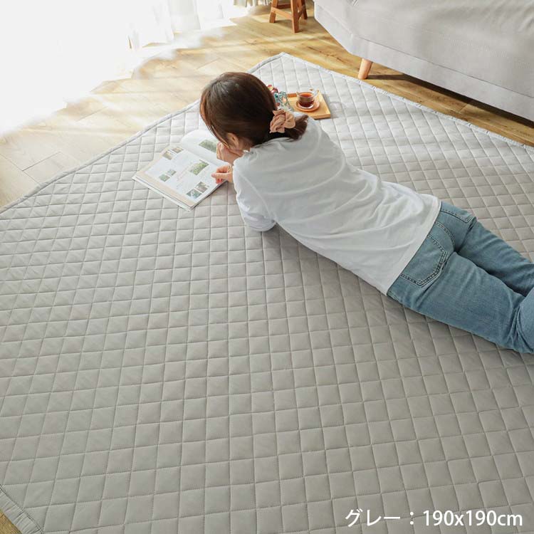 ラグ ラグマット 2畳 夏用 ふかふか カーペット 洗える 正方形 キルティング キルトラグ 綿100% ウレタン 子ども部屋 床暖房対応 滑り止め付き オールシーズン リビング 春夏 綿 コットン オールシーズン <イネスラ / 約190x190cm>