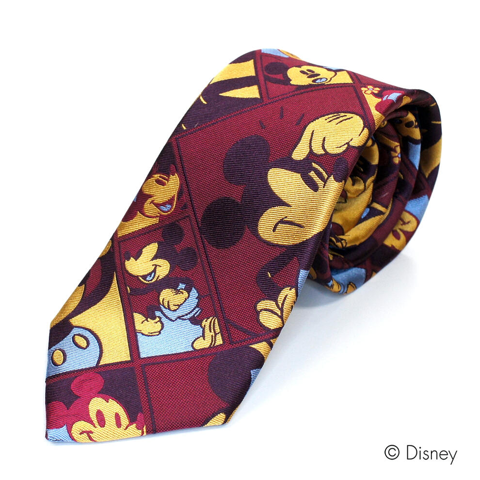 Disney Character Design Tie 大きなミッキマウスとミニーマウスがデザインされたポップなネクタイシルクで織られた生地のため、繊細で美しいミッキーをお楽しみ頂けます。