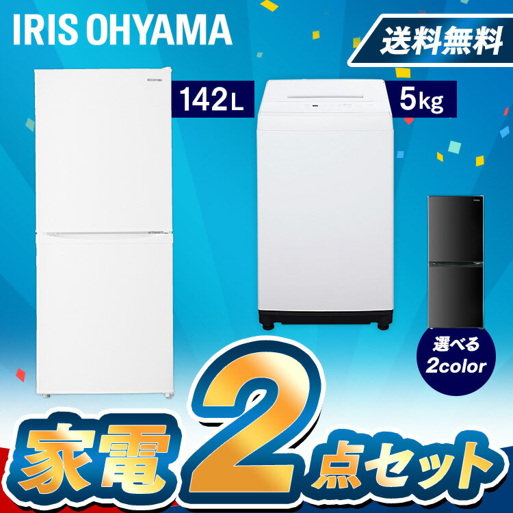 ●セット内容ノンフロン冷凍冷蔵庫 142L IRSD-14A-W ホワイト全自動洗濯機 5.0kg IAW-T502EN シャンパンゴールド【ノンフロン冷凍冷蔵庫 142L IRSD-14A-W ホワイト】(アイリスオーヤマ)●種類:ノンフロン冷凍冷蔵庫●冷媒:R600a●ドア数:2●ドア開閉方向:右開き●商品サイズ(cm):幅約50.0×奥行約54.9×高さ約121.5●質量:約40kg●定格電源:AC100V(50Hz/60Hz)●定格内容積※1:全体142L(冷蔵室90L/冷凍室52L)●冷凍室の性能※2記号:フォースター冷凍負荷温度(食品温度):-18℃以下冷凍食品の保存期間の目安:約3か月●年間消費電力量※3:259kWh/年●電動機の定格入力:49/56W●電熱装置の定格入力:8W●省エネ基準達成率:103%●電源コード:約1.8m●主要材質:鋼板、PS、銅、ガラス等●付属品:製氷皿、玉子トレー※1 定格内容積は、日本工業規格(JIS C9801:2015)にもとづき、食品収納スペースと冷気循環スペースを含んでいます。