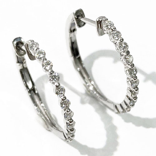 K18WG Total0.3ctダイヤモンドフープピアス※別途¥10,000でプラチナに変更可